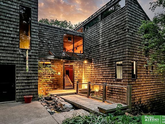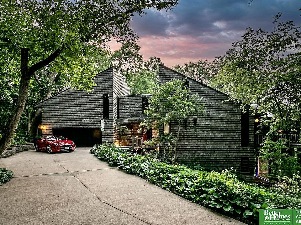 Welcome to this hidden gem nestled on private & serene 1.85 acre lot, enveloped by lush, mature trees. Designed by renowned architect Stanley J How, this exceptional home boasts a unique charm that sets it apart w/3 bed/5 bath. As you enter main level, you’ll be captivated by fascinating beams & vaulted ceilings that add character to living room & dining space, while commercial grade windows flood RMs w/natural light, creating inviting & warm ambiance. KIT is spacious w/granite, subzero fridge/freezer, eating area & open to delightful sunroom. Primary suite equipped w/2 sep baths, W/I closets & private deck. Loft(s) provide wonderful reading area & office/lounge space overlooking KIT. Lower level is fantastic! Family RM w/wet bar is great for entertaining. Beds each have private baths. Conveniently located near prestigious Omaha Country Club, this offers the best of both worlds: seclusion & proximity to amenities. Close to interstate access, you are only 15 min from any part of city.