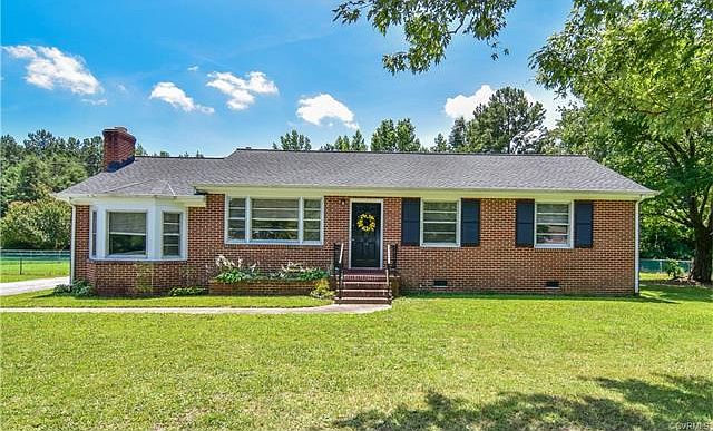 Terrific location with a large yard in Henrico! This charming ranch home features 3 bedrooms and 2 baths, a family room with cozy fireplace and exposed beam ceiling and a bright eat-in kitchen. For more formal entertaining, enjoy the lovely living room with large picture window that produces an abundance of light. The master bedroom is spacious and has an ensuite. There are hardwood floors throughout most of the home, the roof is only a year old and the well has a new cover and pressure tank. It is move in ready! The outside is a perfect find, too, with a large fenced yard and detached, oversized garage. This is a great find and won't last, so don't miss this opportunity!
