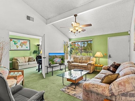 This bright spacious unit #2, sits on Tahquitz Creek Golf Course with stunning mountain views. This two-level, home features a main-level living area and Den / BR room downstairs with 0.5 restroom, 2 bed, full bathroom up-stairs. Available starting December 2025, or earlier. Offered Unfurnished on a 12-month lease. The open kitchen and dining area flow to a private back patio, while the front patio overlooks the pool and spa, ideal for relaxing or entertaining. Situated on a great community Mountain Shadows, a gated community in South Palm Springs, residents enjoy access to (6) pools, (2) tennis courts, and beautifully maintained grounds. Tahquitz Golf club is 1 minute away, stunning golf fairways surround community. Includes (1) assigned covered carport space and (1) additional / guest parking space. Washer and dryer are located inside the unit for convenience. Located minutes from Trader Joe's, shopping, and dining and 10 minutes from downtown Palm Springs.