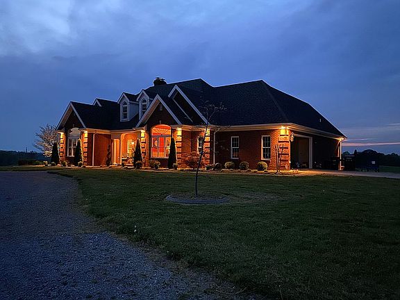 This beautiful property is located in one of the most beautiful areas in Columbia, Kentucky! With over 5400 sq ft of total living including the basement this house is 100% move in ready! This home was custom built in 2007 with the best custom finishes offered! As you walk in the front door you are greeted through a beautiful foyer that leads to a large ornate trimmed dining room with trayed ceilings. Then to the left you are greeted with a large office with wood stained built ins with a large storage closet. Down that hall leads to 2 large bedrooms and a shared bathroom. To the heart of the home you have a huge open concept living room & kitchen. The living room has 15ft ceiling with a large coffered trim! A beautiful stone wood burning fireplace finishes off this room! The kitchen offers a gallery style kitchen with tons of storage & pull out drawers on every custom built cabinet. Off the kitchen large laundry room with a 1/2 included. Then you walk into the master suite with views for miles! The master bedroom offer a vaulted trayed ceiling. Then you walk into a large spacious Master bathroom with large soaker tub, double sinks, shower and private water closet. The master closet is finished with custom cabinetry that people dream of! The basement has been turned into a in-laws suite of your dreams! Offering a huge living room featuring a 800 Gallon fresh water fish tank, a separate large media room, bedroom & bathroom. Fully finished kitchen & large storage area that leads to a concrete safe room with a built in vaulted gun safe with custom built cabinents! This is the home & property of you dreams! This home also offers a lodge that is approximately 3200 sq ft building with 14 ft ceiling and finished room above. There is a full bathroom downstairs & the upstairs is finished as another living quarter. Approximately 9 acres around house & lodge will be included with purchase. Call, Email or Message us today about coming to see this beautiful property! Benton or Ashton Fudge (270)378-0700 ashton.pyles@gmail.com Thank you for Viewing!