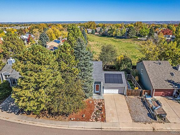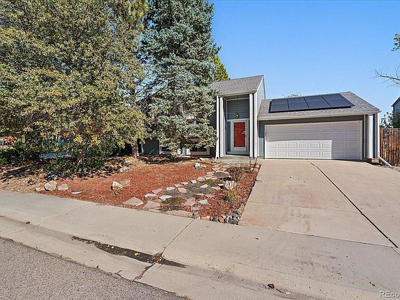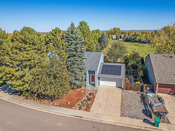 Welcome to this move-in ready, West Meadows, Bi-Level Home. Solar is paid for. 3 bedrooms and 2 full baths, with 1690 Square Feet. Backs to green belt. Private yard, with low maintenance, high quality turf. Lots of natural light. Open floor plan from kitchen to living/dining. Garage has built-in workbenches. Walking distance to schools. Beautiful French doors open onto deck. Garden boxes, Firepit, Rain Barrel. Short walk to Hine Lake. New furnace in 2011. All water intake piping redone to Pex and water heater replaced, New composite deck and under-deck patio area, in 2012. Artificial turf in back yard, in 2013. New kitchen backsplash in 2014. Refinished wood floors in 2016. New hail resistant roof and solar panel system, in 2019. Created side yard garden oasis, in 2020. Repainted main upstairs living area, in 2023.