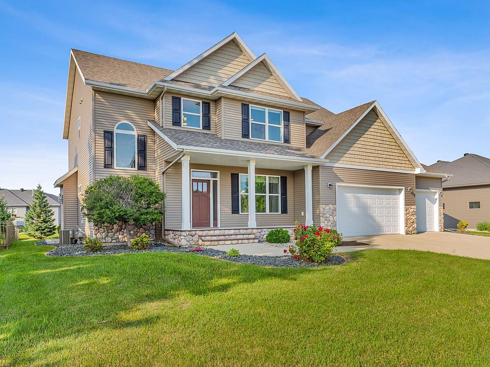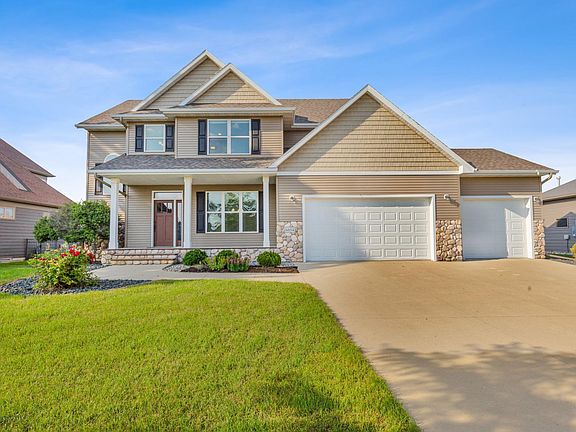 Welcome to this charming traditional 2-story home, masterfully crafted by Titan Homes, nestled in a hidden neighborhood close to schools. This quality-built residence features 5 spacious bedrooms all situated on the upper level, providing ample space for your family. As you approach, you'll be greeted by a delightful front porch, perfect for enjoying your morning coffee or evening relaxation. The landscaped yard with curb edging and an underground sprinkler system enhances the home's curb appeal. In the backyard, you'll find a paver patio, ideal for gatherings. The basement offers tremendous potential, with space to create a 6th bedroom, an additional bath, and a family room, allowing you to customize the space to suit your needs. Inside, the functional mudroom off the triple heated garage is equipped with storage lockers, conveniently located near the laundry area & half bath. Best of all, no special assessments! Don’t miss the opportunity to make this exceptional home your own!