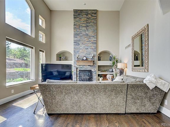 Astonishing views of the Daniels Park Bison Sanctuary await you within this spectacular six-bedroom, five-bathroom home that is located in the desirable Daniels Gate Park neighborhood. You will be welcomed with a bright and airy open floor plan backing right up to the Bison Sanctuary, with an abundance of deer visiting the backyard daily. Upon entering this home you are greeted with a 2-story foyer, an exquisite curved wrought iron staircase, and beautiful hardwood floors thru-out. The main level includes formal living & dining spaces, a large gourmet kitchen, an oversized island, granite countertops, updated cabinets, stainless steel appliances, double ovens, and a pro-gas cooktop. The family room boasts a spectacular stacked stone custom two-story fireplace, high ceilings, and two-story windows. Upstairs there is a large primary suite with his and hers walk-in closets, a five-piece bath, and a beautiful fireplace in the sitting area that overlooks the magnificent park with more breathtaking views of the bison and wildlife. Down the hall, you will find three more bedrooms and two bathrooms. This home has 1752 square feet of finished basement with high ceilings. It is a perfect mother-in-law suite that is easy to rent and adds great potential income. The basement includes a kitchen/bar area, family room, 2 bedrooms, and a gorgeous bathroom with an oversized shower and built-in BlueTooth speakers to sing all of your favorite songs while in the shower. This is a special home that you will not want to pass up, it is a true show stopper.