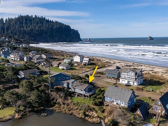 SPECTACULAR OCEAN AND LAKE VIEWS from this perfectly situated beach cabin! Nestled on the tranquil shores of Cape Meares Lake and just steps from the beach, this rare gem offers front-row seats to crashing waves, breathtaking sunsets and effortless beachcombing. Built on sturdy pilings with concrete footings and cross bracing, the home is designed for stability and gives an elevated view of the surroundings. Inside, an open floor plan and cozy wood stove create a warm and inviting space. A deck off the dining area gives incredible views including wildlife such as Great Blue Herons, osprey, bald eagles and elk. Currently a short-term rental with a transferable license—don’t miss this incredible opportunity!