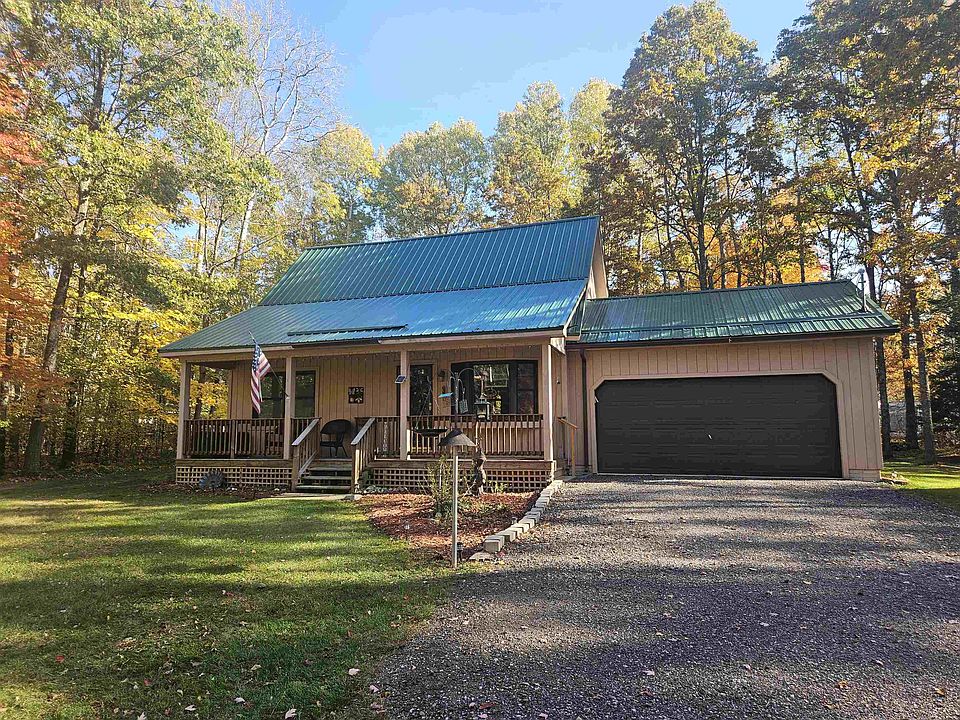 Wonderful Chalet home located in Lake Of The Pines. Enjoy all the amenities without the waterfront taxes. 2+ bedrooms, loft for extra sleeping, or family room would be perfect for overnight guests. 1 full bath on main level with first floor laundry. Large half bath upstairs between bedroom and loft area. Take the chill off with gas log freestanding fireplace, well insulated home including crawl space. All appliances remain in addition to 12 x20 2 story shed, 10,000 watt generator, gazebo, and softener. Attached heated garage , oversized back deck, 25x25 detached garage with electric, crushed asphalt driveway. This truly an immaculate home, double lot with great curb appeal too.