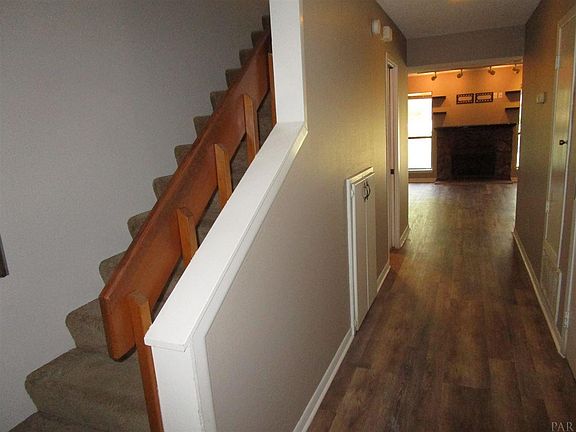 Beautiful 3 bedroom and 2.5 bath townhouse with a single car garage in the Oak Knoll Subdivision. This highly desirable area is conveniently located near shopping (new BJ's, University Mall, etc), numerous Restaurants (Texas Roadhouse, Cheddar's, etc), West Florida Hospital and the Interstate. The home is located approx. 15 minutes from Navy Federal Credit Union on Nine Mile Rd, 15 minutes from Downtown Pensacola and 25 minutes from Pensacola Beach. It is the Perfect Location for you! The home is Move-In Ready. Downstairs has living room - dining room combination with a stone fireplace, kitchen with a breakfast bar, storage area under the staircase and a 1/2 bath. Upstairs there are 3 bedrooms and two baths. The main bedroom is on the back of the home. It has a walk-in closet, center vanity and bathroom. The middle bedroom has French Doors opening up to the second story balcony. This room would make an excellent office with a view of the Majestic Oaks. The balcony would be the perfect place to start your day. The home has many recent updates: Luxury Vinyl Plank Flooring was installed throughout the entire downstairs in September 2020; a 30 year 3 Dimensional Shingle Roof was installed in 2019; the balcony Deck with Powder Coated Aluminum Railings was installed in 2019; the hot water heater and the dishwasher was installed in 2019. The low maintenance backyard is enclosed with a privacy fence. The back gate opens onto Oak Knoll's Common Area which is a perfect place to take your dog for a walk. Call me today to schedule a tour of your New Home!