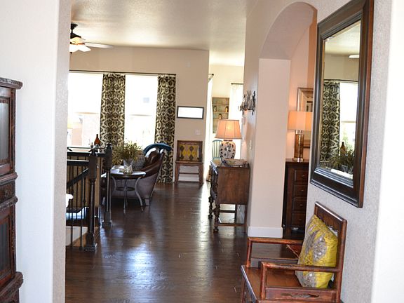 Please email: 6055leonyoungdr@gmail.com Available: June 2015 Beautiful, warm, attention-to-detail, 4 bed/3 bath home (ranch with basement) in Wolf Ranch! Main level is wonderful living space: open concept with 10 ft ceilings, gourmet kitchen w/nook, dining room, 2 bedrooms, laundry/mudroom (with uppers), and great room. Gorgeous hardwood floors throughout main level (tile in bathrooms, carpet in bedrooms), custom light fixtures and extra recessed lights. Light-filled GREAT ROOM has gas fireplace, media niche w/ conduit, built-in bookshelves, and ceiling fan. KITCHEN has upgraded granite as well as SS appliances (including dual-fuel range, built-in microwave, French door fridge, and dishwasher), large sink, large island, 42” uppers, pull-outs, built-in desk, kitchen tower, breakfast nook, and butler’s pantry to the dining room. Spacious MBR with ceiling fan, 5-piece bath (including raised dual-sink vanity, large soaker tub, and separate tiled shower with seat), and large walk-in closet with plenty of storage. BASEMENT has 9 ft ceilings, spacious rec/game/family room (plumbed for wet bar), 2 bedrooms with walk-in closets, dual-sink full bathroom, and large storage area. 3-car garage is insulated, with tons of shelving/storage space. Professionally and beautifully LANDSCAPED, with native trees and flower beds, sprinkler system, 22 x 18 patio (10 x 18 covered), sidewalk from front yard to back yard, and views of America’s mountain. Central AC, wired for home theater and security. Perfect neighborhood with pool, summer music concerts, community center, parks, stellar D20 schools (2 blocks from elementary, 1.8 miles from high school and middle school), and proximity to everything (minutes to grocery stores, malls, movie theaters, fitness centers, activities).