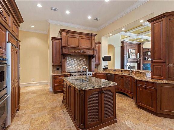 - Interior Features: Ceiling Fans(s), Eating Space In Kitchen, High Ceiling(s), Master Bedroom Downstairs, Walk-In Closet(s), Crown Molding, Solid Wood Cabinets, Kitchen/Family Room Combo, Solid Surface Counters, Built in Features, Window Treatments, Cathedral Ceiling(s), Vaulted Ceiling(s), Wet Bar, Coffered Ceiling(s)