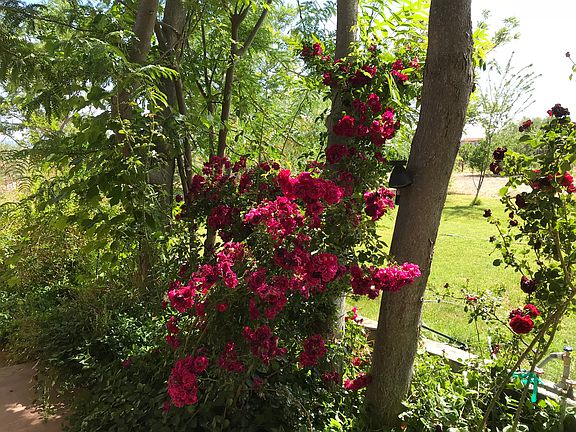 RIMROCK, Own your own little oasis. Home is tucked beneath mature shade trees. Space for your toys, horses, farm animals and gardening. Open living room and kitchen/dining area, deep sinks and smooth cooktop range. Large laundry room. French doors lead to the tiled patio and grassy rear yard. Master bedroom sliding glass door leads to the passive solar greenhouse. Master bath has walk-in shower and separate sinks. Guest room is spacious with access to the greenhouse and a small private patio. Guest bath has tub/shower combo. The third bedroom is separate from the main home and could be used as an additional master or guest quarters. Home is surrounded by mature shade trees, fruit trees, shrubbery and flowers. Gardening is made easy with the 20 raised beds complete with water hook up.