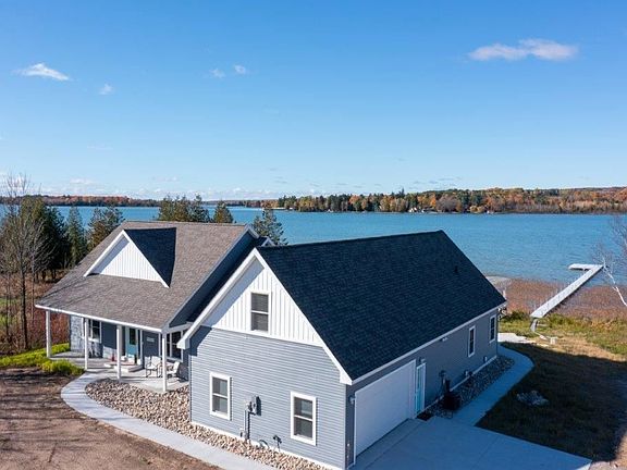 140 FT. WATERFRONT HOME ON CROOKED LAKE FOR SALE! Newly Constructed Energy-Efficient Ranch Style Home overlooking Crooked Lake in the Heart of Emmet County. The large stylish concrete patio is perfect for wonderful family gatherings. This premiere waterfront property connects to the fabulous Inland Waterway which links to Crooked, Pickerel, Burt, Mullet, and Lake Huron. Spacious 3 bedroom home plus bonus room with 4 Queen beds, Spectacular Kitchen, Private Master Suite with luxurious bathroom and walk-in closet. There is a brand new $14,000 dollar 130 ft. aluminum dock with two boat stations. Private location on a drive with only 2 homes on it. ICF conditioned crawl space can be used for storage. Furniture and John Deere Tractor optional. Immediate occupancy. Landscaping to be completed by buyer.