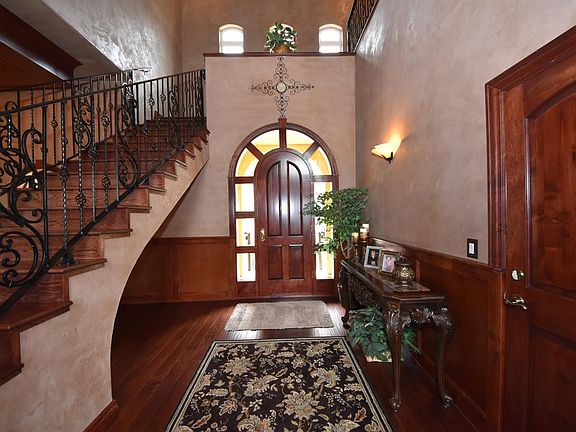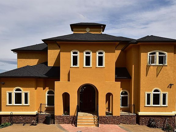 Mediterranean Home with 180 degree City Views. Offering 3 bdrms w/Office(4th bdrm suite?). Elevator to ea. Flr. Elegant Staircase & Bridge w/wrought iron railing. Ceilings:12-24ft. Gorgeous Plastered walls. Exquisite wood work: solid doors/Arched Entry & Master/Wainscoting/Step ceiling/crown molding/medallion. Hrdwd flrs. 1st Floor: Living Room. Formal Dining. Large Open Kitchen w/Granite Slab counters, eating Island, Induct. Cook Top, dbl ovens, 18 Tile flrs, 2nd Dining. A Spacious Great Rm w/stone & hearth Fireplace, Large arched windows w/Valley views. 2-Spacious Bdrms. 1.5 bthrms, Laundry rm. 2nd Floor: Expansive Master Suite w/sitting rm, walking balcony, enormous walk-through Closet. Bthrm suite: 2 vanities, Granite cntrs, tile flrs, Jetted tub, walk in shower, chandeliers. Other: French doors, 2 balconies, Recessed Lighting, Intercom system. Large rear Deck/Patio(tiled), Gazebo w/kitchen & oversized Gunite Spa w/bar seating. 6 car gar- 58ft deep/RV doors.
