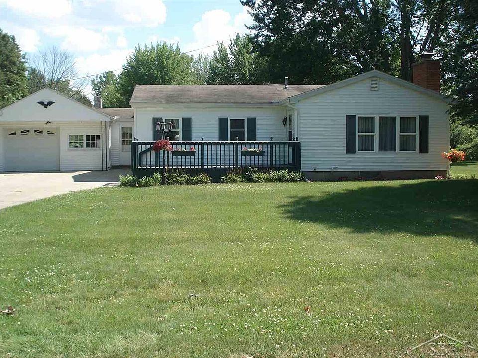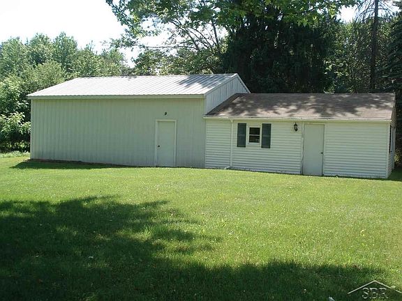 Move in condition. This cute 3 bedroom 1 bath home sits on over 6 acres of land. All the appliances are included with laundry on the 1st floor. Full DRY basement. Large pole barn for your storage and hobby needs. Does not require flood insurance. All offers to be submitted by 6/22/2020 9pm.