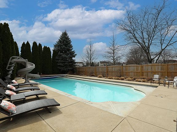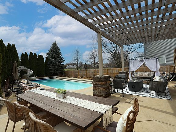 Step into the backyard & enjoy your own paradise vacation! In-ground pool w/slide, auto cover and heater. Cedar pergola w/stone trim, BB court, privacy fence, mature trees...you won't want to go anywhere else! Backs up to several acres of common area adding even more privacy. Over $20k in landscaping. Custom basement w/pub style bar & full kitchen w/new vinyl hardwood floors. Main floor newly painted. Kitchen w/island, SS appliances, updated hardware & backsplash. Newly re-modeled laundry/mudroom w/custom cabinets. Large pantry w/dbl doors & etched glass. Great room w/fireplace. 2nd floor loft. PB has 2 closets, fireplace, WIC updated w/custom shelves, bath has new paint, light fixture, mirrors. 2nd FB includes dual shower heads! A MUST SEE