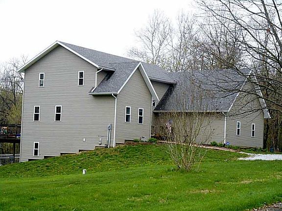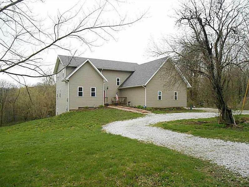 A captivating location in the country w/views of Sugar Creek. Mature trees line the 5.3 acres of gently rolling land. Just 6 years old, this home boasts ultra efficient geothermal heating & cooling w/top of the line insulation. Open concept living. Hickory kitchen cabinets w/large island & walk-in pantry. Ample bdrm space w/1 on main level & 4 up. Master suite offers dual sink vanity, w/closet & a soaker style tub & shower. Walk-out basement w/concrete walls & some framing. 900 SF deck to enjoy.