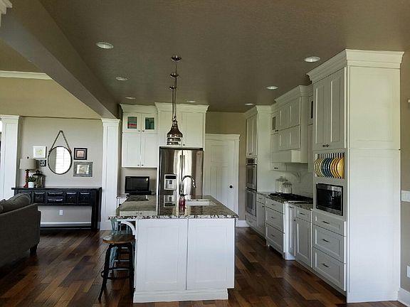 South facing, Cul-de-sac lot, fully landscaped, flat yard, the best view of SnowBasin in the neighborhood. Hardie and real stone exterior, huge windows 8 and 9 foot windows. Main floor has 3 bedrooms and 2.5 baths, customer color matched shutters throughout, transom interior doors, gourmet kitchen with white cabinets to the ceiling and maple drawers, 8 foot island with additional storage, double wall ovens, 5 burner gas range, dining area with built in nook seating, walk in pantry, solid surface countertops throughout, engineered hardwood, mudroom with custom built ins, fireplace with custom finish work and hearth, moldings and wall finish work throughout, wood look tile in bathrooms with glass tile bath/showers, over-sized bonus room with walk in toy closet. Spacious laundry room with farmsink with room to additionally customize. Unique rambler floor plan with separate Master bedroom, back foyer with a beautiful open staircase, covered deck, 2x6 exterior walls, upgraded windows, insulation, and furnace. Basement is framed which has 2 to 3 additional bedrooms, jack n jill bath, ½ bath, huge family room, cold storage, gaming/exercise/craft/storage room (or could be a theater room), blanket closet, open decorative shelves, full kitchen, an additional laundry room, and a walk out basement with rock retaining.