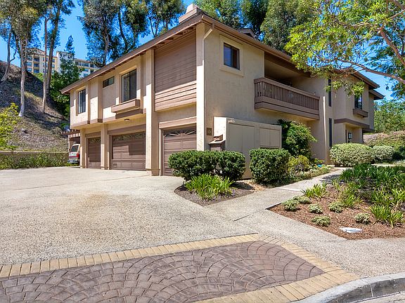 Quiet and private end unit townhome with open valley views in Park Place Estates. Completely remodeled in 2009, this 3 bed, 2.5 bath property has a free-flowing open layout with recessed lighting, maple wood floors, window treatments, and crown molding. Living room has gas fireplace with slate tile surround and French doors that lead to a spacious, partially covered balcony. Lots of natural light. Master suite has balcony, 2 closets, dual sink vanity, and large tub. This 2 story turnkey townhome has a private entrance, with side by side 1 car garage and carport. Many upgrades include a kitchen with granite counters, new cabinets, stainless steel appliances including a gas range, recessed and under cabinet lighting. Enjoy the convenience and additional storage of a pantry / laundry room with new tile floor. The bedrooms have new carpet and new closet doors. Insulation was blown in between walls to retain heat/cold better and reduce noise. Every room is wired with cat5 Ethernet. New front door, new interior paint and includes doggy door. Upstairs full baths have new tile floor, granite counters, cabinets and doorless European travertine showers. Remodel in 2009 extends to new wiring, plumbing, roof, walls, heater, and appliances. Park Place Estates is a peaceful community located on the western end of Mission Valley offering residents a heated pool, hot tub and community center. Close to Sea World Drive, YMCA, University of San Diego, Fashion Valley Mall, Hazard Center, and the Trolley line. FHA Approved!