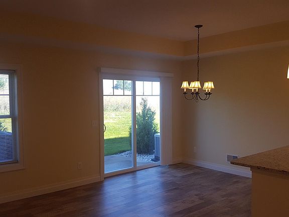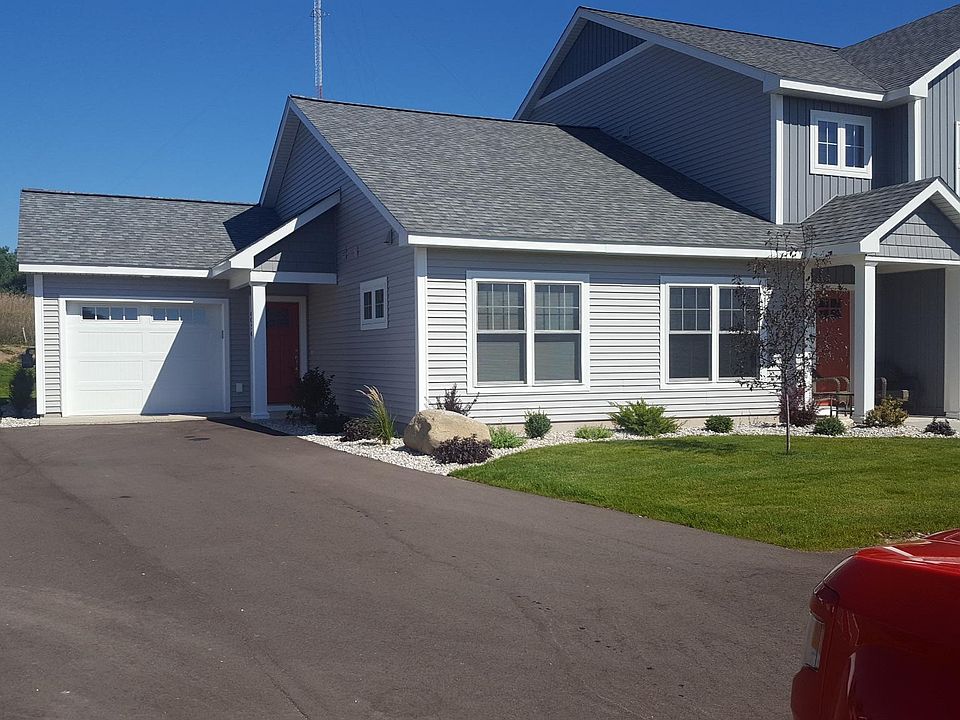 New 2 bedroom, 1 bath, one level apartment available. Nice size great room/kitchen with 9' tray ceilings, fireplace, granite countertops, pantry and stainless steel appliances. Insulated, attached garage and private entry and patio. Tenant pays for electric, gas and cable. Sewer, water, garbage, snow removal and lawn service is included.
