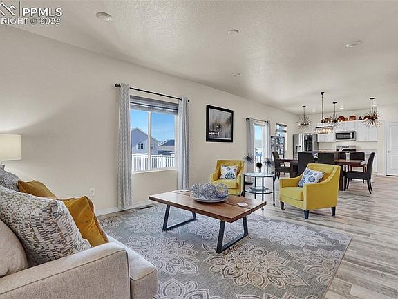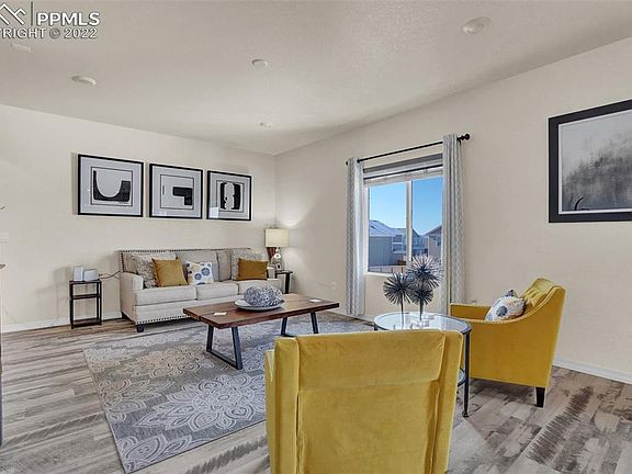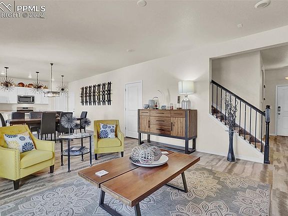 Like New Home with Open floorplan, Kitchen features an upgraded white cabinets, upgraded gas stainless steel appliances, dining room and a pantry for extra storage. The Main floor Livingroom, Kitchen walkout to a porch and Master Bedroom offer beautiful mountain views and gorgeous sunsets! Spacious master suite boasts a four-piece bathroom, stand alone shower with dual sinks and an expansive walk-in closet. There is a Main floor Bedroom or use as an office. The Basement has recently been Finished with a Bedroom, Office, Family room with the Walkout to the patio and Backyard that is Landscaped. Home is perfect for entertaining either inside or outside. The Google Nest allows you to control your Thermostat, Lights and other connected devises. Close to Ft. Carson and nearby Grocery store and other food and service outlets.