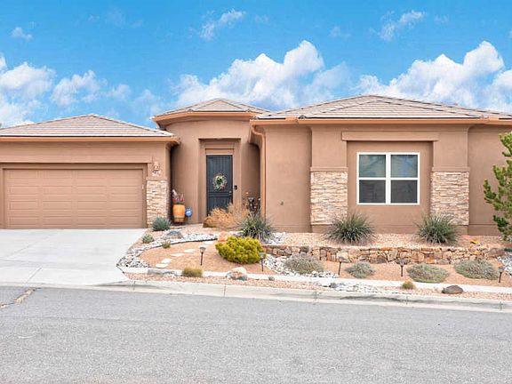Looking for a reason to stay Home? This beautiful custom home by Charter Homes will make you cancel vacation plans. In addition to tens of thousands in updates including pd. SOLAR, there is a central courtyard (w/gas stub), two outdoor pergolas, outdoor kitchen, custom firepit, putting green and envious Sandia Mountain VIEWS. The backyard alone raises the bar for rest & relaxation with room to entertain everyone you know. 4th bedroom Casita perfect for office or multi-generation living. Situated in Mariposa a master-planned community with miles of asphalt and dirt trails abutting a 2400 acre nature preserve, w/community center incl fitness center, indoor/outdoor pools, massage room, lockers and showers. HOA arranges activities all year long. 10 min. to I-25, 35 to Sunport, 40 to Santa Fe.
