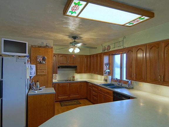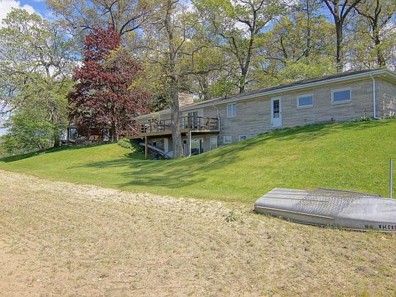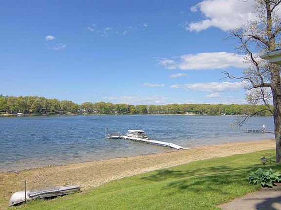 Many feel its the best view of the lake. On almost an acre of property this sprawling walk out ranch has 145 feet of waterfront on Keeler all sport Lake. An attached 2 car garage and a detached 3 car garage with a wood burning stove. This 3-4 bedroom 3 bathroom home has an open floor plan with a large kitchen with under cabinet lighting and corian counters. A dual sided gas log fireplace and main level laundry. Main Level bathroom has heated ceramic floors.