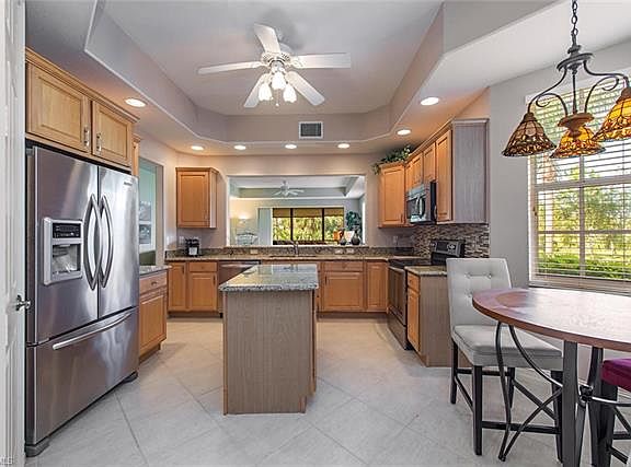 C.14244 - Shows beautifully with 10 foot ceilings on the first floor and large spaces between buildings. Lots of Privacy with properties on only one side of the street. Quality updates to kitchen including granite countertops and stainless steel appliances. Guest Bath has been renovated as well with seamless glass shower, new tile and countertops. Large spaces and lots of storage. Storm shutters on lanai are convenient and secure. The Strand residents have the convenience of using the Strand north gate that leads to Livingston Road as an additional option from the main gate off Immokalee Road. The Club At The Strand will waive the $5000 initiation fee for the Club Membership if the Buyer upgrades to that membership within 60 days of closing. See attached membership information.