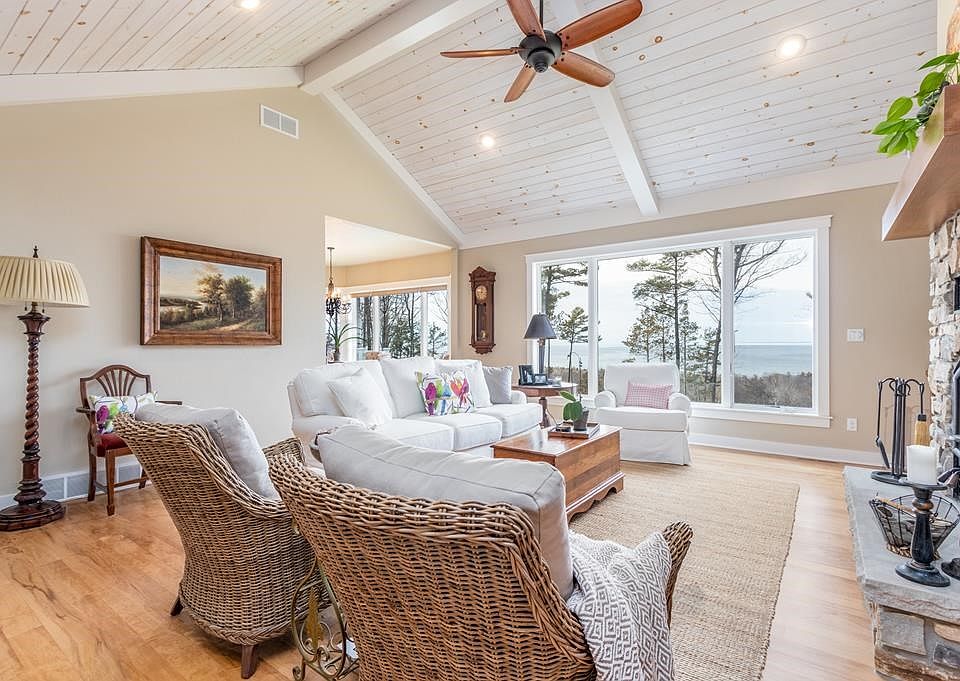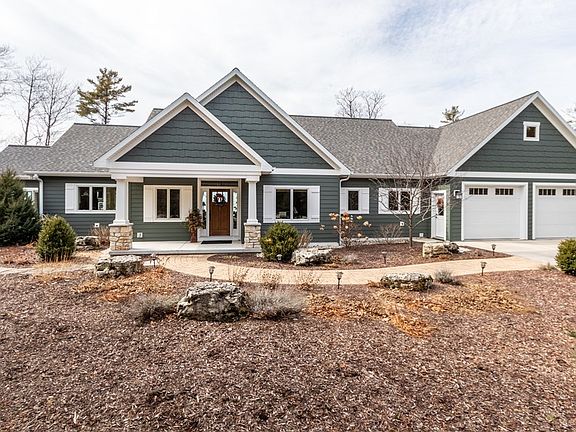 It's all about the VIEW! This top of line, energy efficient home has been well thought out & spared no expense. The water views are exceptional & expansive from most every room in the house. Thermador appliances & granite countertops in the kitchen, quartz countertops in baths. Sunroom w/3 sides of windows to take in the views of water & woods. Master suite on main level w/heated floor in bath. Beautifully landscaped yard on a large lot and maintenance free exterior w/LP Smartside siding, Trex trim and Trex beadboard front porch ceiling. Finished walkout lower level complete w/custom built bar, gas efficient fireplace, office, 2 bedrooms and additional garage for workshop or boat storage. Great location! Fabulous home!