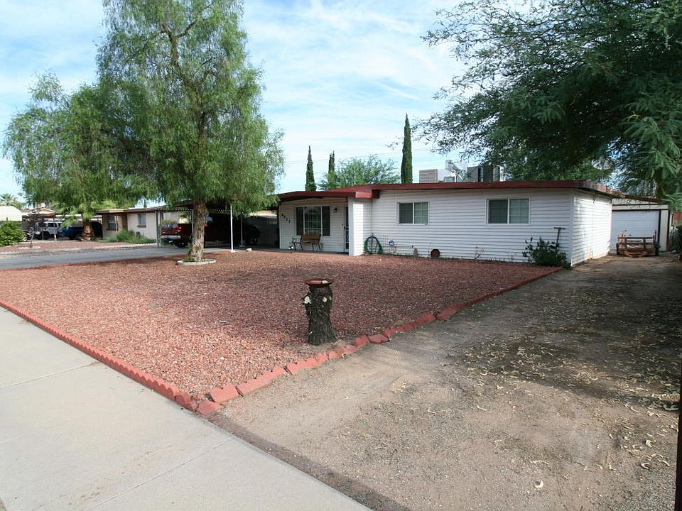 A mechanics or hobbyists dream! Cozy home has plenty of parking for vehicles and toys. A private garage/workshop out back with a nice covered patio and a yard made for entertaining. Additional large storage shed with an enclosed side patio. Double pane windows and a newer AC unit as well as an evaporative cooler help keep this home cool. A quaint Kitchen with lots of cabinet space. Ceiling fans throughout. Low care landscaping. Close to DM Air Force Base, shopping, parks and anything else you may need.