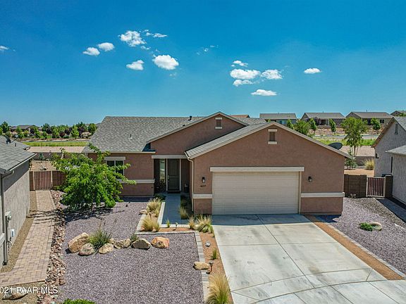 Serene backyard views of Prescott Valley's iconic Glassford Hill. This 3 bedroom 2 bath home set on a beautifully maintained lot. This turn-key 1,468 sqft split floorplan is one of Granville's most sought after, especially with a large oversized 2.5 car garage. Mature landscaping provides great curb appeal and tranquility when you relax in the backyard. Upon entrance you are greeted with a beautiful custom electric fireplace, large open space to entertain friends and family. Spaciously designed kitchen with gas range and eat in peninsula countertop. Master suite boasts walk-in closet, dual sinks, walk-in shower. You don't want to miss this Granville home.
