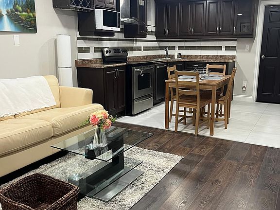 Beautifully renovated and furnished basement apartment with a separate entrance, situated in the highly sought-after John Fraser and St. Aloysius Gonzaga Secondary School district. This spacious unit features two generously sized bedrooms, a modern full bathroom with heated towel rack and premium shower head, an open-concept kitchen with SS appliances. The inviting living room is combined with the kitchen. Enjoy the convenience of your own in-suite laundry and one parking space on the driveway. Conveniently located near shopping centers, grocery stores, parks, close to Elementary & Middle schools, and public transit, with easy access to Highways403 and 401 and close to all essential amenities. Tenants pay 30% of the utility, Internet is included.