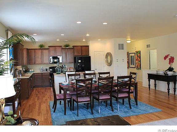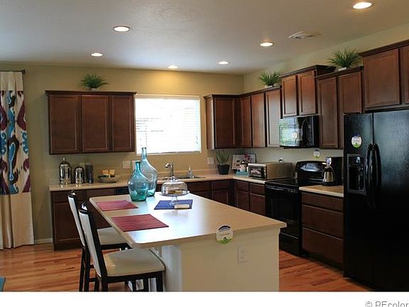 Towering mountain views welcome you to this Lennar community w/ incredible value on a corner lot! Kitchen showcases granite ashen wite counter-tops w/ full glossy backsplash topped off w/ 42" birch cabinets. Kitchen opens to great room including gas burning fireplace w/ marble surround & tons of natural lighting! Secluded master suite includes granite counter-tops in master bath. Upgraded carpet & gleaming hardwood flooring extending through main level are added bonus. Front & back yard landscaping are complete & you can't beat 9 ft ceilings. 2" faux wood blinds throughout! Delight in small town charm without sacrificing convenience in this amazing community. Perfect location just west of I-25 w/ great access to Boulder, Longmont, Erie, & Denver. Historic old town Fredrick is nearby. Trail systems, open space & scenic views make this community a winner. For community video tour visit http://youtu.be/tTqcfRw4epE. Make this one yours in September. Photos are of model home.