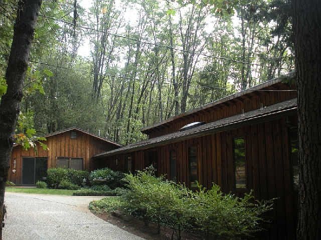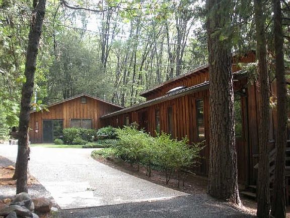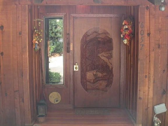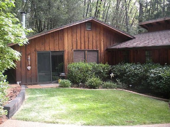 THIS COUNTRY GETAWAY OFFERS THREE ACRES OF WOODED PRIVACY BACKING UP TO TEN ACRES OF BLM LAND. THE HOME HAS THREE BEAUTIFULLY DECORATED BEDROOMS. THE MASTER SUITE HAS A SLIDING DOOR LEADING OUT ONTO THE BACK DECK, AND A TILE BATHROOM WITH DUAL VANITY, AND DUAL SHOWER HEAD STEP IN SHOWER. THE KITCHEN FEATURES STAINLESS STEEL APPLIANCES, WALNUT HARDWOOD FLOORS, SILESTONE COUNTER TOP, AND HANDMADE COOPER EATING BAR OPEN TO FAMILY ROOM AND DINING ROOM. VAULTED CEILING AND OPEN FLOOR PLAN PRESENT VERY WELCOMING FAMILY ROOM DINING ROOM COMBO. THE HOME OFFERS A BONUS ROOM THAT HAS BEEN CONVERTED (~100k) TO A FULL BAR ROOM WITH POOL TABLE, JUKEBOX, TV, WALNUT HARDWOOD FLOORING, MIRRORS, AND WOODSTOVE. THE PERFECT HOME FOR ENTERTAINING. THE PROPERTY ALSO OFFERS ONE FINISHED TWO-CAR GARAGE AND ONE UNFINISHED TWO-CAR GARAGE, A LARGE WOOD SHED, AND AN OUTDOOR ENTERTAINMENT AREA WITH FIREPIT IN MIDDLE OF THE CIRCULAR DRIVE. THERE IS ALSO A HOT TUB ON THE BACK DECK AND UNDER HOME STORAGE.