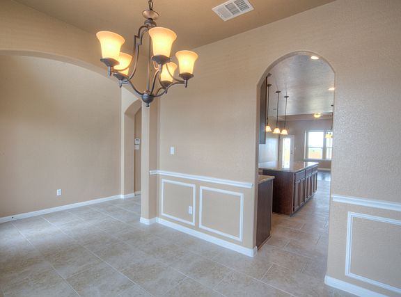 Model 2885C Spacious open floor plan with volume ceilings, architectural arches & designs. Mahogany entry doors w/ glass inserts. Custom colors wall & trim paint. Rounded sheet rock corners in common areas.Oil rubbed bronze hardware & fixtures. Cultured marble vanities. Faux wood blinds. SS appliances, granite counter tops w/ ceramic tile back splash. 14 seer ac w/ programmable thermostat. 10 year Home of Texas warranty. Distress ceramic wood finish tile in Family Room