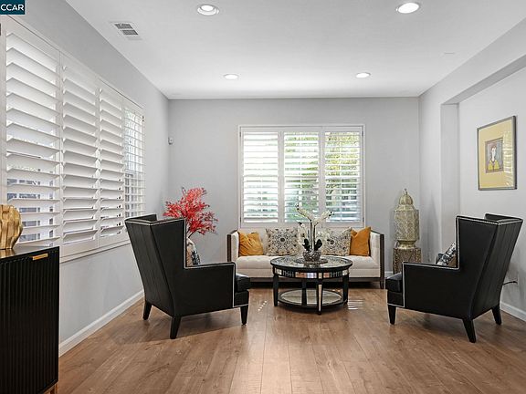 Well maintained home with an open floor plan featuring large living room, dining room, kitchen and a 1st floor bedroom and full bath. Kitchen with large island is updated with quartz countertops, painted cabinets, 6 burner cooktop, a powerful exhaust fan, dishwasher, recessed lights and a decorative ceiling light fixture. Solid surface flooring throughout with real hardwood and decorative tile. Repainted in designer colors. Great curb appeal, front balconies, plantation shutters, laundry room with a sink, an enclosed courtyard, and more. Tile roof with solar panels, 3 car garage and an electric car charger. Close to 3 levels of award winning schools, parks and shopping. Don’t miss this exceptional opportunity!