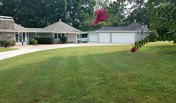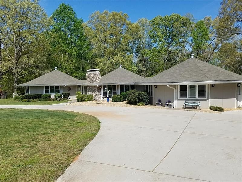 NEWLY LISTED ... a DODECAGON! TOTAL HIGH END REMODEL FROM THE STUDS OUT - EVERYTHING!!! This 4 Bedroom, 2 Bath, and 2 Half Bath Stepless Ranch (sitting on 1.36 acres) is a secluded private paradise bordered with a 200 foot treeline and gated entry. This property has had a complete renovation including roofs and provides a "Caribbean-like" oasis here in North Georgia with open-concept Kitchen-Living Room-Dining. You can cook or mix a drink while being part of conversations, enjoy the entertainment center which sits on a mantel of your 8-foot brick fireplace. Check out the horses in the adjoining pasture behind your large backyard. There are two Master Bedrooms which have direct access to the inground gunite saltwater heated pool that features two waterfalls and multiple spa-jets. The Larger Master has a unique walk around closet with the laundry area (washer/dryer ) which allows clothes to be washed/dried/hung/folded/and stored all in one large room. There are are two HVAC units with zone controls. There is a BONUS poolhouse that is 320 sq feet totally finished with hardwood floors. The oversized 3-car garage has tons of space and there is an attached separate bonus WORKSHOP with garage door access. The property is equipped with an alarm system including the poolhouse and garage.