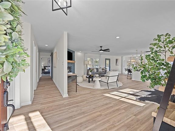 Renovated 3 bedroom, 2 bathroom home situated on a beautiful piece of property complete with an in-ground salt water pool. The open floor plan provides an impressive entry with updated lighting and neutral colors. The oversized living room features a cozy fireplace and new flooring which flows right into the open dining room. Quartz countertops, new shaker cabinets, stainless steel appliances, matte gold accents and a large peninsula with room for bar stools complete the dream kitchen. The spare rooms share a roomy updated hall bathroom The primary bedroom includes a nice en-suite with dual closets, a dual vanity, and a gorgeous tiled walk-in shower. You'll love the basement with an additional room and plenty of space for storage, an office, or a game room. The exterior features include a 2 car attached garage, 2 car detached garage, a fenced yard area, covered front porch, large back deck and a storage building. *Multiple Offers Received- please submit offers by 11/26 at 5:00 pm*