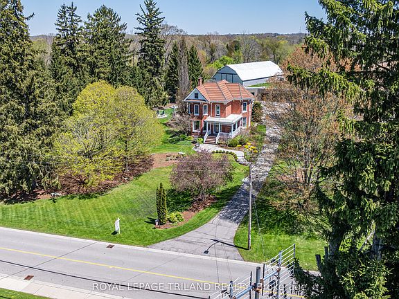 Welcome Home to this Stunning Red Brick Home with 5 bay detached garages, in Union, Ontario! Perched proudly atop a hill since 1890, this breathtaking red brick home in Union, Ontario, is a timeless masterpiece a rare opportunity to own a slice of history while enjoying modern comforts. Meticulously maintained from the ground up, this grand 3-bedroom, 2-bath home blends historic charm with modern luxury and sits on almost an acre of beautifully landscaped property. Step inside and be transported to an era of classic elegance, where soaring ceilings, intricate woodwork, and original architectural details seamlessly complement thoughtful updates. The lower level offers a spacious family room, a rec room with a pool table, and a separate entrance perfect for entertaining or a private retreat. Outside, your backyard oasis awaits! Featuring a gorgeous inground pool (2022) with a brand-new heater (2024), stamped concrete, a covered porch with composite, along with vinyl millwork. The deck is pressure-treated with vinyl. upgraded lighting (2018), and a luxurious granite outdoor kitchen, this space is perfect for summer relaxation and entertaining. Surrounded by nature in your own private setting. Impressive 5 bay garage offers endless possibilities! Bay 1 Man Cave with ample space for sporting goods and extra parking. Bay 2 Workshop. Bay 3 & 4, Bay 5 Club Room with epoxy flooring, antique barn board, heat pump (2023) for entertaining. This property provides the perfect blend of privacy and convenience. Just minutes from the Blue Flag beaches of Port Stanley, you can enjoy beach life, theatre, fine dining, cozy cafes, live entertainment, and boutique shopping, all while retreating to your own hilltop haven. A timeless treasure in a coveted location, this is a once-in-a-lifetime opportunity to own a piece of Union's rich history! Too many upgrades and features to list. Experience the perfect blend of history, luxury, and lifestyle!