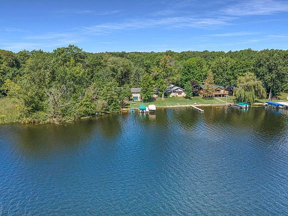 Welcome home, or to your weekend getaway This wonderful 3 bedroom home has frontage to beautiful, All sports, Long Lake, with a channel to Palmer lake. Master has own full bath with heated floors. Two car garage has workbench and plenty of storage, if that isn't enough property also has a 30x30 pole barn AND lake side storage shed. Come relax on the screened in porch or on the large deck. Lake life can be your new paradise. HOME IS BEING SOLD AS IS.