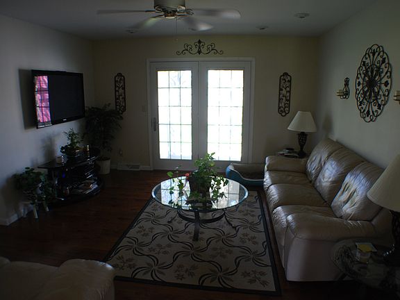 Lovely, move in ready, home featuring open living concept. New hardwood floors in living and dining rooms. French doors from dining to patio that leads to detached 2 car garage with extra storage area. Master bedroom has 2 double closets and newly remodeled bath with step in shower. Hall bath is large and also newly remodeled. Attached 2 car garage has pull down stairs to storage area above. Clark Edgar water for inside home and well for outside use. Electric is Enerstar and gas is Ameren.Aeration septic system is serviced by Snearley. Freezer in garage, zero turn mower (1 year old) and 50 inch tv on Living room wall are all negotiable. Crawl space is deep and has lights and a sump pump.