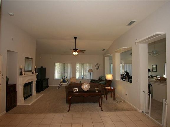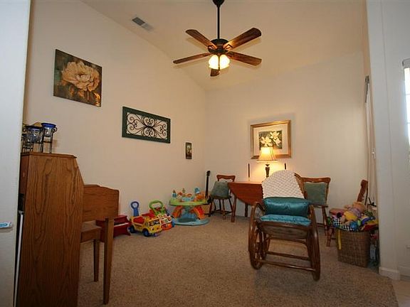 This lovely home has a light and airy feeling w/an open floor plan that brings everyone into the conversation. Cul-de-sac location allows for safer, more private, extra large lot. Great curb appeal greets you, then your eyes are in for a real treat as you go from front porch and enter into main living room, grand kitchen w/upgraded tile & all amenities including extra lighting features, & dining area that has door to covered patio. There is an extra rm for office, formal dining, or den. Inside utility w/deep sink. High ceilings, concrete side yard, finished garage, pre-wired for surround sound, ceiling fans in every rm (6), vertical blinds on all windows, pantry, major storage. Master bedrm is large w/dual walk in closets and access to covered patio. M. bath has dual vanities/sinks, spa tub w/jets. Efficient A/C with low energy bills. Back yard is easy maintenance and designed for privacy. Covered patio, lots of grass, & block fence along back. Plenty of room for a pool