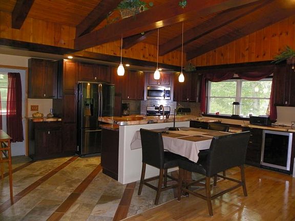 This unique property has a back yard that makes you feel like you are in your own little corner of the world; completely fenced, beautiful pond, fire pit, walking paths and a crushed rock parking pad for your recreational vehicle (with electrical hook up). The home has been renovated and updated in many areas...its just waiting for you to put your finishing touches to make it your own. The upstairs has a open concept kitchen/dining, great room complete with a beautiful gas fireplace for those chilly evenings. Vaulted ceilings and a wall of windows facing the back yard give the feeling that you are sitting outside. Two large bedrooms and full bathroom complete the upstairs. The current owner has started transforming the basement into additional living space...with a bathroom, bedroom, office and bonus space. A breezeway leading from the basement to the 1 1/2 attached heated garage also provides access to the back yard. The 24x40 heated detached garage/workshop also has a green house attached on the southern wall of the building. There is an additional building located in the back yard that contains the pump for the pond as well as ample space for additional storage.