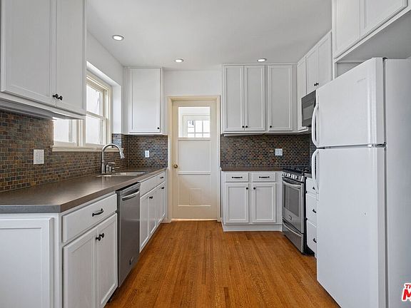 Welcome home to this enchanting upper unit beaming with character and charm in the heart of beloved Carthay Square. Enjoy an abundance of natural light that beams through the grand picture windows and reflects off of gleaming wood floors. The spacious living room is picture-perfect, accented by a warm fireplace and elegant crown molding detail. Beautifully updated, the stylish kitchen features white cabinetry, tile backsplash, stainless-steel appliances, and dishwasher, flowing graciously to the breakfast nook. Additional amenities include a well-appointed bedroom, bath with tub and shower, in-unit laundry, ample storage, parking, and community yard for al-fresco dining or lounging. Centrally located, this home is just moments from local dining, shops, and entertainment.