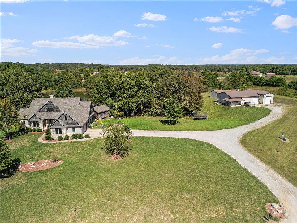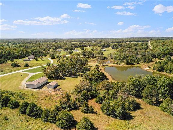 Exquisite Contemporary Ranch on 13.86 Acres with Stunning Lake Views - Perfect for Horses or a Hobby Farm - 6059 Private Road 1602, West Plains, MO - $25,000 Flooring AllowanceWelcome to this remarkable contemporary ranch-style home nestled on 13.86 meticulously manicured acres, offering breathtaking views of a serene lake. This exceptional property is not only a luxurious sanctuary but also offers the potential for equestrian enthusiasts or those looking to start a hobby farm.Step inside the open concept living area, where natural light pours through large windows, creating a bright and inviting ambiance. The gourmet kitchen is a chef's dream, featuring custom maple cabinetry, a large island, and ample space for culinary creations. Adjacent to the kitchen, the cozy breakfast room and elegant formal dining area offer plenty of space for both intimate dinners and larger gatherings. Anchoring the living space is a magnificent floor-to-ceiling stone gas fireplace, perfect for cozy evenings.The master suite is a private retreat, boasting a stunning ensuite bathroom complete with beautiful tile work, French doors, a luxurious soaking tub, and a walk-in shower. The home offers a fully finished walkout basement with three spacious bedrooms, two full baths, a large family room, and plenty of storage.Outdoor living is at its finest with a large entertaining deck, partially covered and featuring a fireplace and loft area that overlooks the tranquil lake--ideal for grilling, relaxing, or entertaining friends and family.For those seeking additional workspace, the property includes a 2,640 sq ft shop with a finished office area, wet bar, bathroom, and heating and air conditioning, along with two large overhead doors and separate workshop areas. Additionally, there is a 768 sq ft barn perfect for storage, livestock, or equestrian use. The expansive acreage, with its open pastures, makes this property ideal for horses or to be developed as a hobby farm.