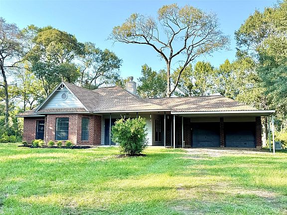 Welcome to your serene country retreat! This charming 1-story, 3-Bdrm/2-Bath home sits on a spacious 2.57-acre lot adorned w/ mature trees and natural landscaping, offering privacy and tranquility. Inside, enjoy a lrg family room featuring a cozy gas fireplace w/brick surround. The kitchen includes S/S dishwasher & electric range, sink window, and spacious breakfast room. The primary suite boasts dual sinks, 2 closets, linen closet, and private commode. 9/2025 luxury vinyl plank flooring graces the kitchen and baths, while carpet adds comfort to the living areas and bedrooms. Outdoor living is easy w/ both front & rear covered patios. Additional features include a gated entry, 2-car garage, 2-car carport, storage shed, well, septic, propane tank & fans. 9/2025 updates: interior & exterior paint; cabinet hardware; and bathroom lighting, faucets & towel bars. 4 sides brick for lasting value! No HOA. Unrestricted property use. Low Tax Rate. Horses allowed. Close to shopping & restaurants