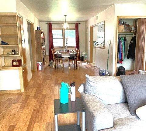 Don't miss out on this spacious home that is only a couple of blocks away from the swimming pool, ball field and park! This home has 2 nice sized bedrooms with the master suite having its own 3/4 bathroom. The 2nd bedroom is right across the hallway from another bathroom. Both bedrooms have a lot of closet space as well as all the build-ins by the bath and laundry room which is also on the main level! The living room is large and a separate area for your dining adjacent to the kitchen. The oversized 1 car attached garage is 14 ft wide by 22 ft long. Plenty of room for a workbench. You also have a good sized shed in the back yard that is on a concrete base. The basement is very spacious and awaiting your future ideas of how to utilize it. There is also another toilet and shower in the basement. The refrigerator, stove, washer and dryer stay!!! The cloths line is reserved.