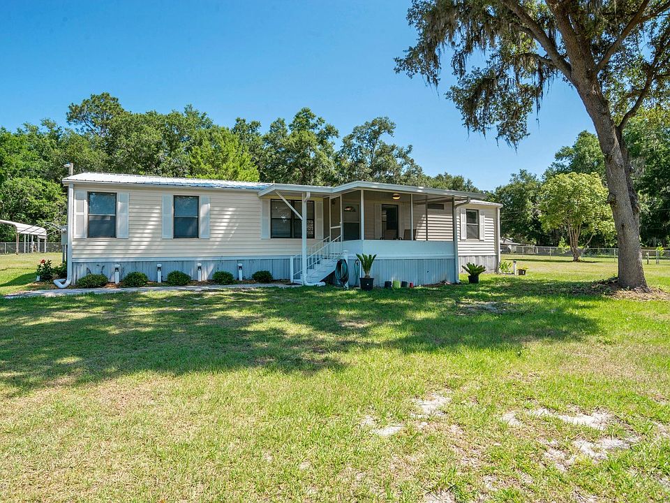 Beautiful 3 Bedroom 2 Bath on 1.3 Acres fully fenced. This home and property has been completely overhauled/renovated with Upgrades. Gorgeous New Kitchen Soft Close Cabinets with HD Laminate Countertops, New Luxury Vinyl Plank Flooring throughout, Updated Bathrooms, Fresh Paint, Repiped with CPVC, Updated electrical in home and the service is underground to the home, New Chain Link Fence with Electric Gate Opener, Citrus Trees, Landscaping with Pavers, Newer Metal Roof, AC is under a service contract and works great and so much more. All the work is done for you so just move in and enjoy either the back porch or Relax on the screened in front porch! Call today for more information and showings!