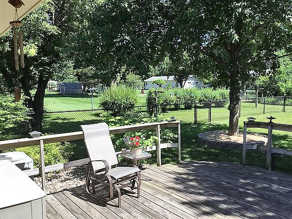 Nice ranch home in great location near bike trails, ball diamonds, city pool, and city park. This 4 bedroom, 2 bath home has hand-scraped hickory hardwood floors in the living room and hallway. 3 bedrooms on main level are carpeted and kitchen and bathrooms have ceramic tile. All interior doors are beautiful 6 panel solid wood with matching woodwork. There are ceiling fans in all main level bedrooms and living room. Wood frame Pella windows have between-the-glass blinds. Basement has finished family room and a 4th bedroom. This home has a nice, big fenced-in yard with a large storage shed and garden area outside the fencing. The yard has mature trees that shade a large deck. House also includes a whole house water filter and softener system.