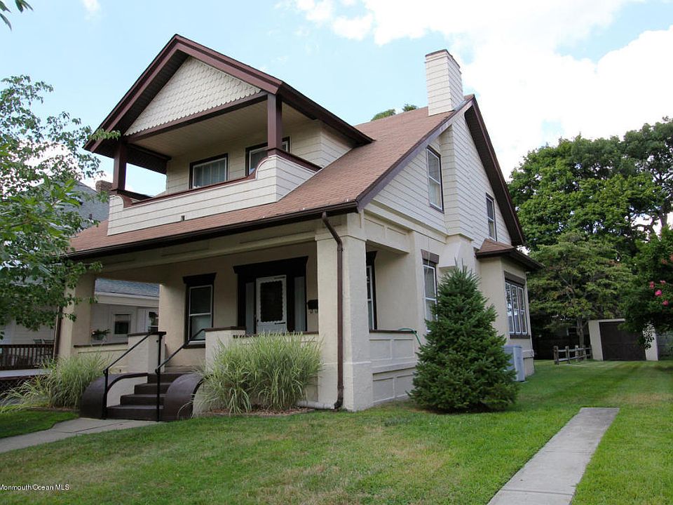 BRADLEY BEACH 1904 CRAFTSMAN COLONIAL. WALK TO THE BEACH. 4 BEDROOMS , 1.5 BATHS, LR WITH FIREPLACE , BIG KIT , FORMAL DR W POCKET DOORS, BUTLERS PANTRY , FULL BASEMENT. HANDMADE APOTHECARY CABINET IN BASEMENT, ORIGINAL CUPBOARD IN PANTRY, WOOD FLOORS, ORIGINAL INTERIOR DOORS AND DOOR KNOBS. WIDE FRONT PORCH, CEN AC, HW RAD GAS HEAT- NEWER FURNACE. LOCATED ON THE SOUTH END ON A WIDE STREET CONVENIENT TO SHOPS, RESTAURANTS, TRAIN. DETACHED GARAGE. A RARE OPPORTUNITY. DON'T MISS IT.