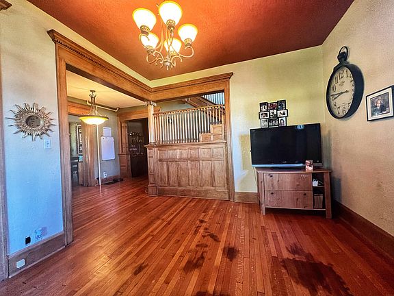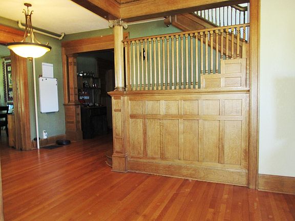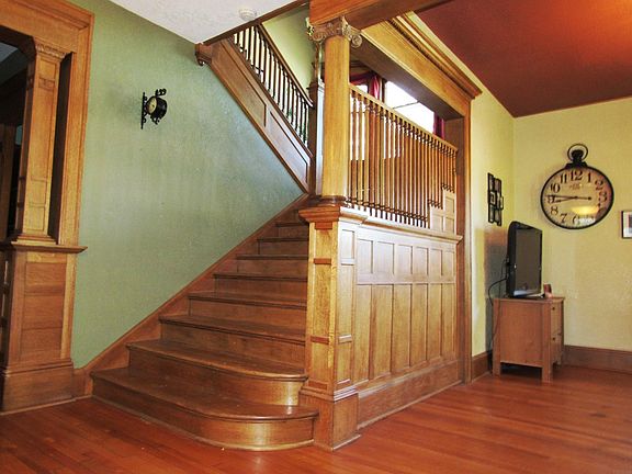 This beautiful home sits on a large lot with a private driveway that leads back to a two car garage and a big backyard. Covered front porch, inviting entryway, beautiful woodwork throughout, tall ceilings, wood floors and pocket sliding doors. A family room with a brick fireplace and arched window seating. A dining room with built in hutches, a pantry just off the kitchen. A beautiful stately staircase that leads you up to 4 bedrooms, 1 Bath and Laundry. A back staircase that takes you down to the 1st level or up to the 3rd level that is partially finished, once completed adding additional living space. The third level adds possibility for an open area, two bedrooms and bathroom.
