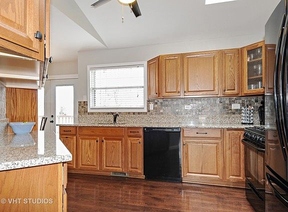 Welcome home to this meticulous 3 bedroom 2 1/2 bath home with a great location. Gorgeous Pergo floors and soaring ceilings greet you as you enter. The continuous flow of Pergo flooring and custom wainscoting lead you into the cozy family room with built in shelving, storage and gorgeous stone fireplace. Newly updated kitchen is adjacent to the family room and features abundant custom cabinetry, granite counters and tiled backsplash. Three oversized bedrooms all with abundant closet space, fresh paint and newer carpet along with updated baths complete the second story. Home is located at the end of a cul- de-sac on a large lot. Storage shed, swing set and wood deck complete this fantastic home. Located near shopping, dining, schools and parks, this home is a 10+