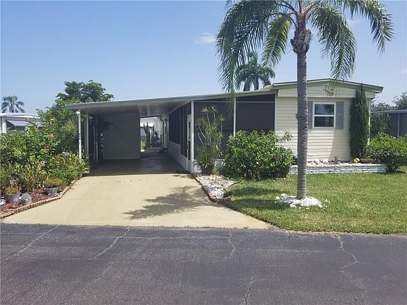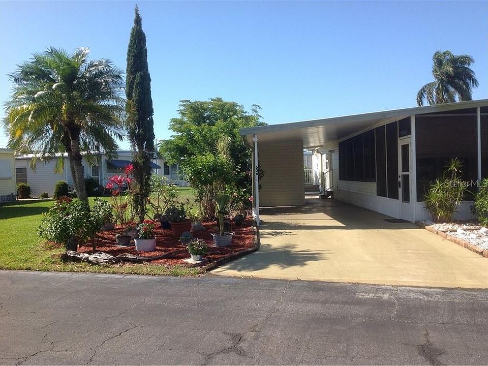 One or more photo(s) has been virtually staged. RENT TO OWN, PET SECTION. Motivated Seller. NEW PRICE $75,000.. Lots of upgrades - Bring your ideas to make it yours. Located in a friendly active 55+ community. Chateau Village is a co op - NO lot rent here. Low maintenance fee of $150/month includes your water, sewer, trash, lawn, community pool, manager and club house. This home could be a 3 bedroom/office. Flooring is Bamboo wood for easy care. Master suite has his and her closets, dressing area and a soaker tub with a shower. Upgrades include: new A/C 2017, new windows 2014, new roof over 2017, master bedroom was added in 2016, enclosed the front porch, glassed in the family room/dining room and has an inside washer/dryer combo. Home is a single wide with add on. Extra large utility shed. Extra feature of the park is a back gate so you don't have to go out onto 53rd Ave. Come for the winter or stay all year long and enjoy the life style Florida offers. Termite and Subterranean contracts on property transferable to new buyer.